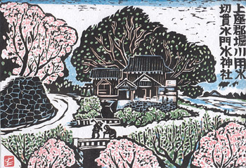 | いわば民問外交が効を奏したかっこうで決まった湿抜工事は、文政8年、1825年2月に始まり、10月に完成。 村人総出で、新たに幾筋かの川を堀り、排水を良くしようというわけですが、難問も続出。 その最大のものは、佐田川や既存の用水とほぼ直角に交差することになる新たな川の流れを、どうやって川の向こうに導くかということでした。現在、甘木市蜷城の一帯で長田湿抜溝、暗渠などの名で知られる構造物が、九兵衛たちの思案の結果の解決策、石で樋を作り、既存の川の下をくぐらせてしまったのです。 ところで、広く知られている朝倉の三連水車・二連水車は、恵蘇宿の山田井堰から流れて来る堀川用水にかかっているのですが、段差のある右岸の千田に揚水するのには、随分工夫や苦心があったようで、寛文3年(1663)の井堰の築造から140年ほどたった文化の頃からまわり始めました。 以来約200年まわり続けて、朝倉平野を代表する夏の風物誌になっています。 堀川用水ともあれ、この著名な水車たちも、また先に紹介した長田の湿抜溝も、朝含平野の先人たちのたゆまぬ努力のほん一例に過ぎません。いま、朝倉地方は、全国的にも最も肥沃な地の一つとされています。 田や畑の生産性も高く、また河岸段丘や山の斜面の果実も豊富で、朝倉地方を訪れる人の多くが口にする「ここへ来ると、なぜだかほっとする」という言葉も、背景にそんな豊かな風景があるからだと思われます。 風景が一面で歴史の集積であるとすれば、甘木・朝倉の歴史もまた、きわめて滋味に富む〃豊かな歴史〃なのだということを、この地の風景は裏付けているかのようです。 長田湿抜を説明する『甘木市史』の一節は、次のような言葉で終わっています。 「…湿抜工事は、その後も九兵衛の子九平、その子九一郎と、松岡家三代の手によって、明治に至るまで受け継がれていった」と。 |
